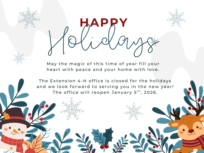 The Extension office i s closed for the holidays and we look forward to serving you in the new year!