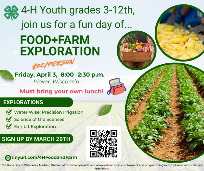 Friday, April 3, 8:00 -2:30 p.m. Sign up: tinyurl.com/4HFoodandFarm