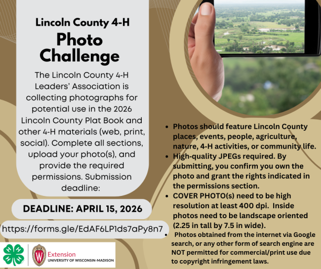 The Lincoln County 4‑H Leaders’ Association is collecting photographs for potential use in the 2026 Lincoln County Plat Book and other 4‑H materials (web, print, social). Complete all sections, upload your photo(s), and provide the required permissions.